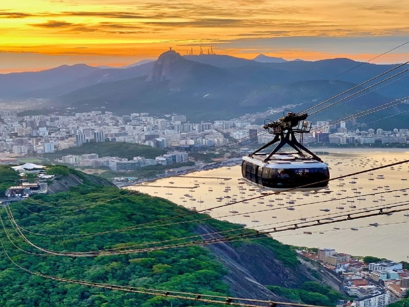 Эта экскурсия познакомит Вас с самыми основными и яркими достопримечательностями Рио и всего за один день! Гид заберет Вас утром из отеля и на машине Вы едете к подножию горы Корковадо. Проехав по центру Рио с его величественными небоскребами банков и архитектурными постройками колониального периода, церковь Канделарии, которая является точной копией собора в Риме, Вы подъезжаете к подножию горы Корковадо,  являющейся одной из самых ярких черт ландшафта устья бухты Гуанабара. Здесь Вы садитесь в состав из маленьких вагончиков, который повезет Вас наверх через дождевой лес мимо растущих вокруг удивительных тропических деревьев. После небольшой приятной прогулки от конечной станции Вы окажитесь у ног огромной статуи Христа Спасителя, стоящего  на вершине  холма Корковадо. На высоте 700 м над уровнем моря возвышается символ Рио - статуя Христа Спасителя. С холма Корковадо открывается захватывающая дух панорама мегаполиса и его окрестностей, в том числе Ботанического сада,  стадиона Маракана, Сахарной Головы. Весь Рио де Жанейро как на ладони будет лежать перед Вами. Вы сможете вдоволь насладиться великолепной панорамой Рио и бухты Гуанабара и сделать запоминающиеся фотографии. Далее Вы вновь на знакомых Вам вагончиках  спуститесь вниз и  поедете к пляжу Praia Vermelha  ( Красный пляж). Отсюда по канатной дороге Вы поднимитесь на гору, на вершину горы Urca (Урка). С этой точки открывается поистине бесподобный вид на Рио. И снова на фуникулере - теперь на Сахарную голову (Pao de Acucar). Гора интересна своей формой, считается, что она похожа на головку сахара, отсюда и название Сахарная голова. По другой версии название происходит от Pau-nh-acqua (на местном языке туземцев) и переводится как «Высокий холм». Отсюда перед Вами откроется весь город, скромно угнездившийся между горами и морем, а лучи солнца, садящегося за пляжем Копакабана, окрасят его в сказочные цвета. Проехав вниз по канатной дороге, Вы в сопровождении гида вернетесь в отель.