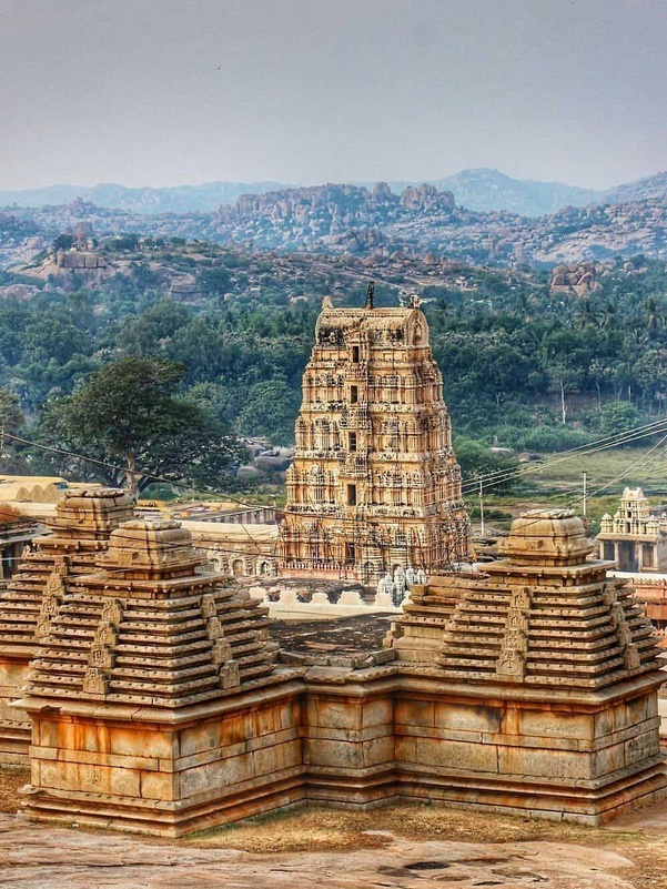 Храм Вирупакша (Virupaksha), расположенный в западном конце базара, является одной из самых ранних построек в городе. Главная святыня посвящена Богу Шиве. Если смотреть на Храм с юга, то мы видим Холм Хумакуту, по которому рассыпаны руины раннего времени, включая храмы джайнов. Там же высится монолитная скульптура монолита Нарасимхи (Вишну в его воплощении полульва - получеловека).