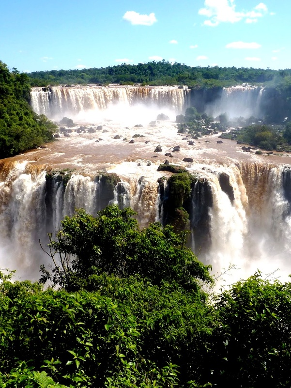 Завтрак в отеле. Вас ждет насыщенная экскурсионная программа. Вы направляетесь к бразильской стороне водопадов Фоз-ду-Игуасу, которые находятся на границе с каньоном реки Игуасу. Сказать, что это великолепное зрелище, не передает всех эмоций, которые вы испытаете. Водопады расположены на территории национального парка с уникальной флорой и фауной. Они возникли в результате извержения вулкана и смещения земных пластов. Название водопадов в переводе с гуарани означает «большая вода». 275 водопадов, каждый из которых имеет свое имя, сливаясь воедино, с ревом устремляются вниз в ущелье "Горло Дьявола". Зрелище водяных брызг в ореоле радужного спектра просто завораживает. По пути к самому мощному водопаду, называемому "Горло Дьявола", вы увидите множество мелких водопадов. Радужные брызги миллиардов капель падающей воды и великолепные пейзажи вызывают несравненное восхищение.
