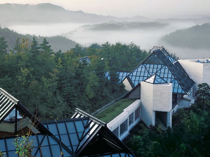 Михо - один из самых загадочных и удивительных музеев Японии. Окружён зелёными холмами, вокруг ни одного населённого пункта - невероятно красивая природа, да нависающий туман, который привносит ещё немного мистики и вбез того более чем загадочную атмосферу.