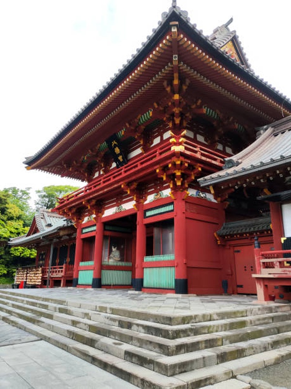 Храм Хатимангу является важной святыней Камакуры. Он был основан в 1063 г. представителями семьи Минамото. Храм посвящен богу войны, а также памяти легендарного императора Одзина Хатиман. Здесь войны Ёритомо упражнялись в ябусамэ - стрельбе из лука с лошади. Для того чтобы попасть в храм нужно пройти от набережной через весь центр города по длинному, широкому проходу с несколькими воротами тори по пути. Главный зал стоит на террасе, к которой ведёт широкая лестница. В главном зале расположены сам храм и музей, где хранятся святыни, такие как мечи, маски и документы.