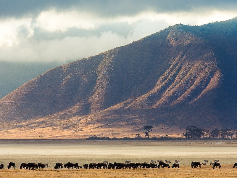 После полудня спустимся на 2000 футов на дно кратера для просмотра игр. Нгоронгоро уникален, так как его физическая защита от естественной красоты человека делает его одним из самых нетронутых уголков дикой природы на земле. Он считается естественным чудом света и внесен в список Всемирного наследия. Это самый большой неповрежденный кратер в мире: глубина 610 метров, диаметр 16 километров и площадь 540 квадратных километров. На дне кратера луга сливаются с болотами, озерами, реками, лесами и горами - все это рай для диких животных, включая самую большую популяцию хищников в Африке. Вулканический кратер битком набит дикой природой, включая всю крупную дичь. Однако его гордость и радость в том, что он остается последним великим убежищем для черного носорога.