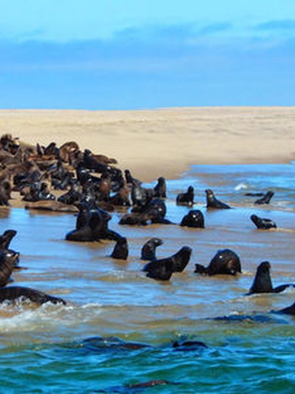 Поездка в Вэлвиш Бэй (Walvis Bay), основной порт Намибии, на экзотическую экскурсию на катамаране по Атлантическому океану.
