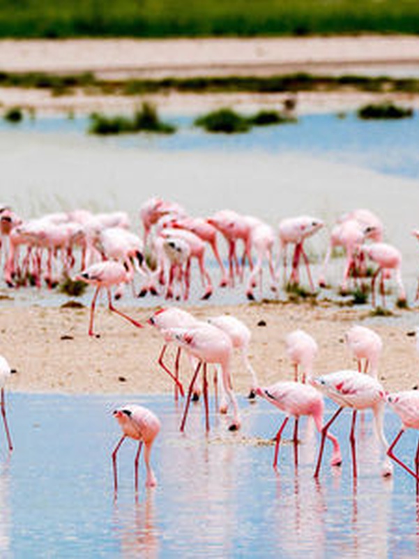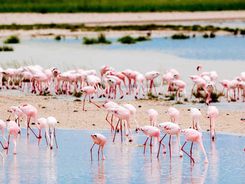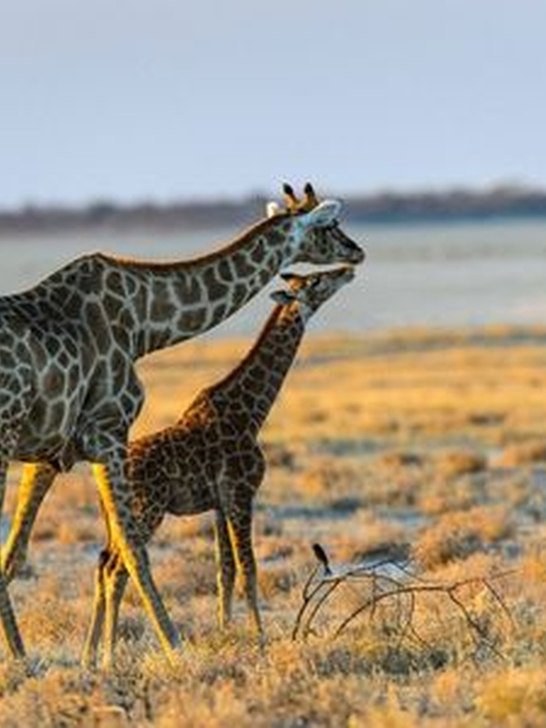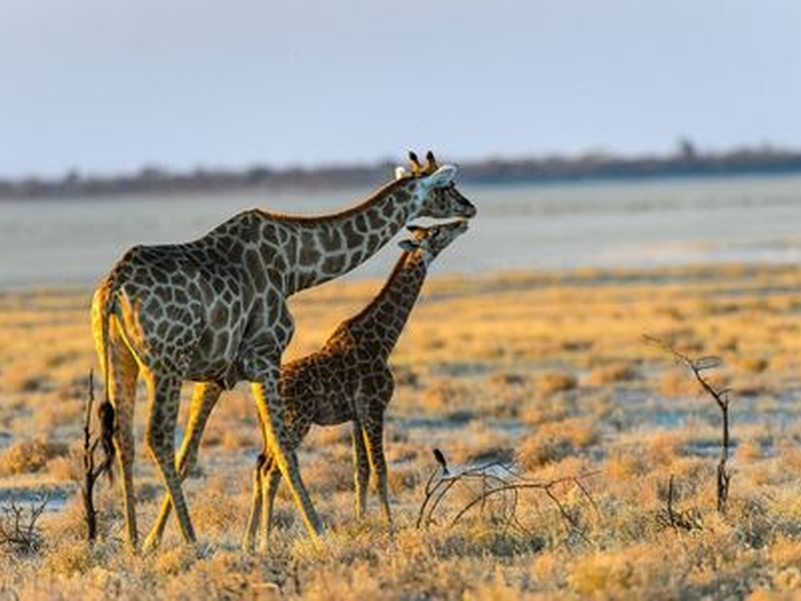 «Место миражей» или «Земля сухой воды» - так звучит в переводе с местного наречия название парка Этоша. И это не случайно – огромная солончаковая чаша из серебристо-белого песка создает эффект миражей под лучами жаркого африканского солнца. Южная часть этой большой чаши окружена различного размера водопоями, куда приходит большое количество животных. А далее начинается настоящий африканский буш с его дикой флорой и фауной. Здесь обитает большое количество слонов, жирафов, различные виды антилоп, зебры, носороги и много хищников – львы, леопарды, гепарды и даже дикие собаки. Также в парке Этоша обитает множество птиц.