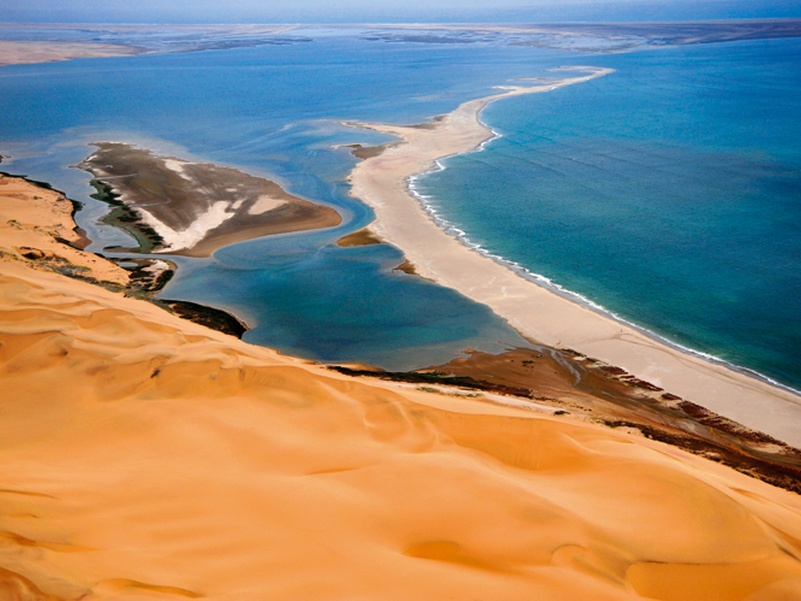 Sandwich Harbour – находится к югу от городка Волфиш Бей и является частью заповедника Namib Naukluft Park. Это уникальное место, о котором слышали многие, но мало кто видел своими глазами. Гигантские песочные дюны, уходящие прямо в океан, создают незабываемый, захватывающий дух ландшафт. Здесь образовалась лагуна, где обитает большое количество птиц и в уединении можно прогуляться по берегу вместе с пеликанами, наблюдая за прекрасными розовыми фламинго.