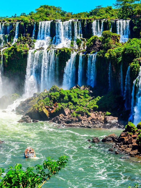 Завтрак в отеле. Вас ждет насыщенная экскурсионная программа. Вы направляетесь к бразильской стороне водопадов Фоз-ду-Игуасу, которые находятся на границе с каньоном реки Игуасу. Сказать, что это великолепное зрелище, не передает всех эмоций, которые вы испытаете. Водопады расположены на территории национального парка с уникальной флорой и фауной. Они возникли в результате извержения вулкана и смещения земных пластов. Название водопадов в переводе с гуарани означает «большая вода». 275 водопадов, каждый из которых имеет свое имя, сливаясь воедино, с ревом устремляются вниз в ущелье "Горло Дьявола". Зрелище водяных брызг в ореоле радужного спектра просто завораживает. По пути к самому мощному водопаду, называемому "Горло Дьявола", вы увидите множество мелких водопадов. Радужные брызги миллиардов капель падающей воды и великолепные пейзажи вызывают несравненное восхищение.