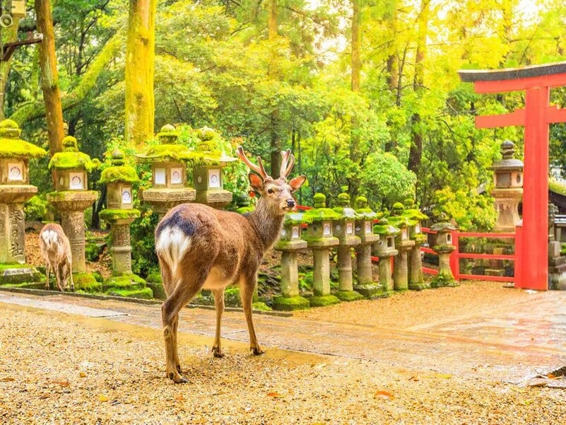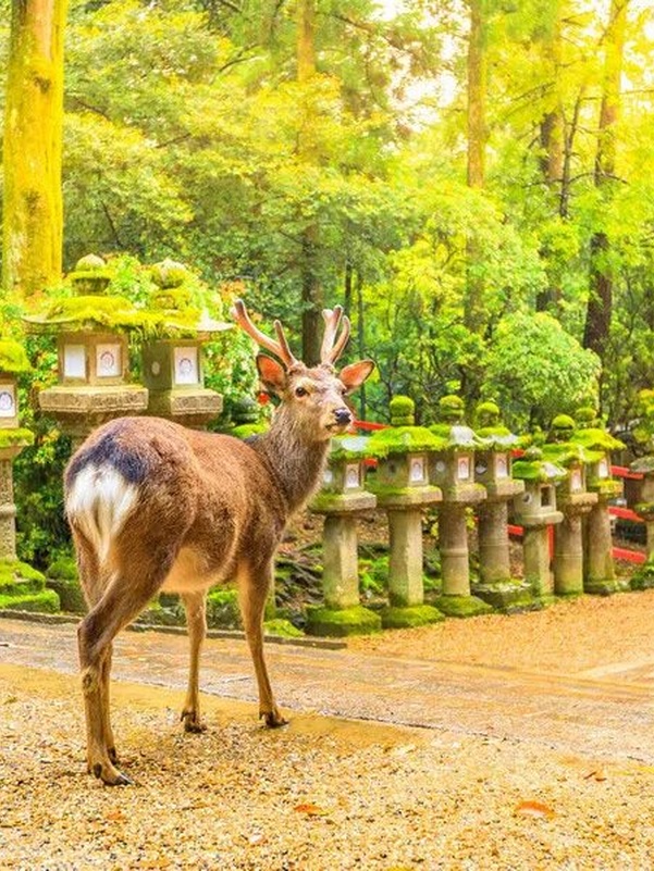 В парке живёт более 1500 ручных оленей, которые считаются "божественными посланниками". По легенде когда-то давно первый японский император попал в Нару на олене – причём прямо с неба. С тех пор все потомки этого оленя почитаются японцами и живут во многих садах и парках города.