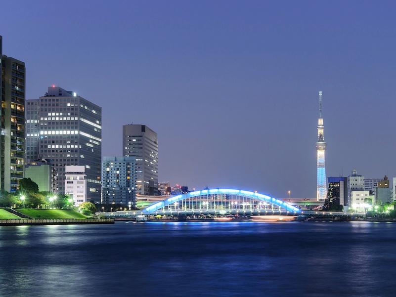 Телевизионная башня и одна из новых достопримечательность Токио. Башня расположена в центральной части Токийского городка Скайтри в городском округе Сумида, недалеко от Асакуса. Башня высотой 634 метра (634 можно прочитать как «Мусаси», историческое название Токийского региона), это самое высокое сооружение в Японии и второе по высоте в мире на момент его завершения.