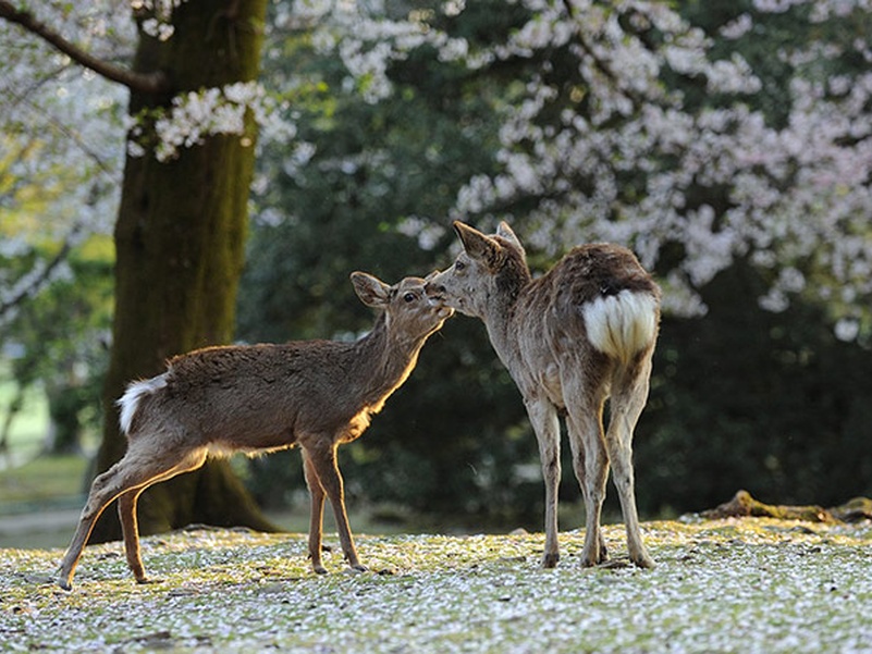 Переезд в Нара. Нара была столицей в 8 веке, до наших дней город сохранил традиционную атмосферу и архитектуру. Вы посетите Тодайдзи, внутри которого на лепестках священного лотоса восседает Будда. Считается, что первый мифический император Японии Дзимму спустился с небес и прибыл в Нару верхом на олене. Священные олени в Наре рассматриваются как потомки того оленя. Сейчас вокруг храмов и в парках их гуляет больше тысячи, они совершенно не боятся туристов, а корм для них продаётся повсюду.